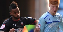 Soccer – npower Football League One – Coventry City v Brentford – Ricoh Arena By David McIntyre 06/04/2013 Brentford’s Shaleum Logan (left) challenges Ryan Haynes (right) for the ball.