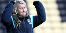 Chelsea Ladies Manager Emma Hayes celebrates the 2-1 win at full time.
