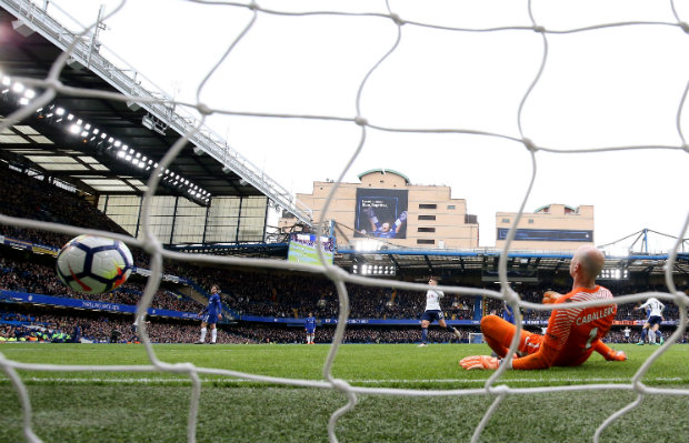 18055825-1 By David McIntyre 01/04/2018 Chelsea keeper Caballero was beaten by a cracking strike from Eriksen