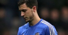 Chelsea’s Eden Hazard walks off the field of play dejected after he receives a red card for violent conduct