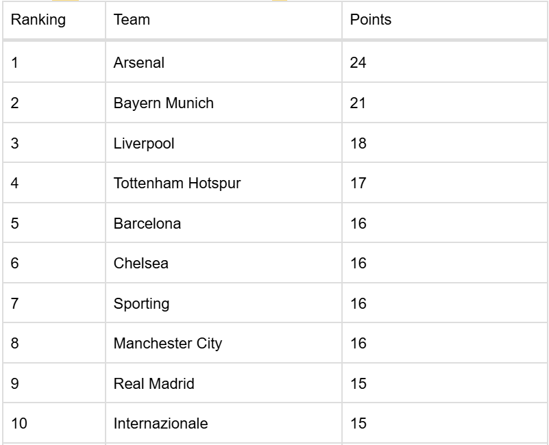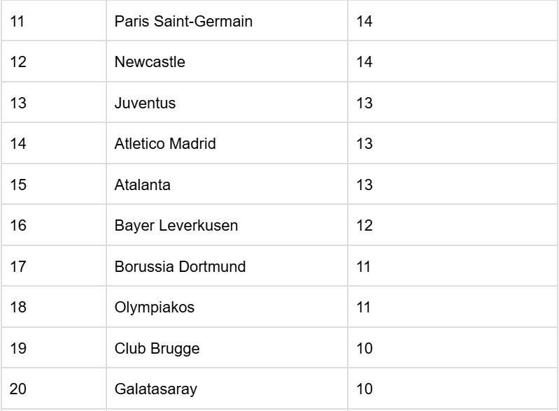 To better understand each team’s chances in the Champions League, it is important to analyze how each of them performed in the league stage of the tournament. That is why we have prepared a table with the top 24 teams, which are all still alive in the competition.